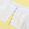 Tämä yhdistelmä on kuin suoraan romanttisesta elokuvasta: herkkä pitsi, puhtaan valkea väri ja kauniisti muotoillut stringit muodostavat yhdessä klassisen ja viettelevän lookin. Lisää omat lempisukkasi, ja olet valmis hallitsemaan tilanteen täydellisessä tasapainossa leikkisyyden ja eleganssin välillä.