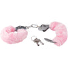 Seksikkäät käsiraudat pinkillä karvapehmusteella, mukana avaimet.