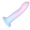 Tämä tyylikäs ja laadukas dildo on suunniteltu erityisesti nautintoasi silmällä pitäen. Sen elegantti muotoilu, jossa on pyöristetty kärki ja miellyttävä kaarevuus, on luotu kohdistamaan ja maksimoimaan stimulaatio. Väritys on hienostunut ja vaihtuu kauniisti vaaleanpunaisesta jäänsiniseen, tuoden esteettistä iloa aisteillesi. Valmistettu parhaimmasta nestemäisestä silikonista, tämä tuote tuntuu uskomattoman pehmeältä ja turvalliselta ihollasi, ja on ftalaatiton. Vahva imukuppi pohjassa tarjoaa kiinnitysmahdollisuuden useille sileille pinnoille ja mahdollistaa monipuolisen käytön, myös valjaiden kanssa. Sen kompakti koko, 13.6 cm pituus ja 2.8 cm halkaisija, on suunniteltu tuomaan iloa intiimeihin hetkiin ilman ylenpalttisuutta. Suosittelemme yhdistämään tuotteen vesipohjaisen liukuvoiteen kanssa täydellisen kokemuksen saavuttamiseksi.