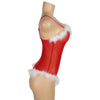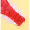 Tässä juhlamielisessä alusasussa yhdistyvät läpikuultava materiaali, valkoiset pörrökoristeet ja leikkisä leikkaus. Täydellinen pikkutontun rooliin tai lahjaksi.