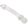 Tässä vahvarakenteisessa, mutta seksikkään tyylikkäässä lasidildossa on kaksi eri attribuuttia – vihjaten, että luvassa on myös tuplasti mielihyvää. Dildon toisessa päässä on yksinkertainen, realistisen näköinen pallura, kun taas toinen, kahdella poukamalla varusteltu pääty on pyöreämpi ja paksumpi. Leiki kaikilla dildon tarjoamilla eri herkuilla ja rakenna itsellesi huokaus huokaukselta kasvava nautinto, joka kulminoituu tajunnantäräyttävään, pyörryttävään orgasmiin. Pallura hieroo himotuttavasti klitorista joka työnnöllä, samalla kun teksturoitu varsi soljuu vastustamattomasti sisään.