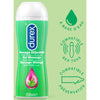 Uniikki 2-in-1-tuote Durexilta, joka yhdistää hierontaöljyn ja liukuvoiteen. Hajuton, kondomi-ystävällinen, silkkinen geeli sisältää E-vitamiinia, joka hoitaa ihoa.