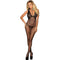 Verkkoasu, jossa kaunis kukkakuvioitu yläosa. Rintojen välistä kulkeva naru jatkuu kaulan ympäri kauniin korumaisesti.