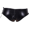 Seksikkäät, mustan kiiltävät alushousut, joissa viekoittelevasti avoin haarus. Sivuilla on kaunis nyöritys. Näissä vetimissä saat veden herahtamaan kielelle.