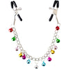 Helinää helskettä ja pienten tiukujen kilinää. Tämä nänniketju toistaa helkkeellään jokaisen liikkeen ja kertoo miten kovaa mennään! Annatko hänen liikkua ja nautitte kulkusten helinästä vai pitääkö pystyä pidättelemään ja hiljentämään kilinä? Kuinka vain, napakat nänninipistimet pysyvät paikoillaan.