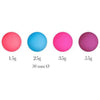 Harjoittelu alkaa vaaleanpunaisella ja sinisellä kuulalla (15 g ja 25 g) – täydellinen kevyt aloitus, jonka avulla löydät tuntuman ja opit hallitsemaan lihaksiasi. Ajan myötä voit siirtyä tummempiin sävyihin ja raskaampiin painoihin, kunnes hallitset myös 55 gramman violetin kuulan – silloin tiedät olevasi mestaritasolla.