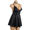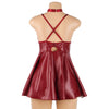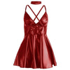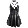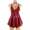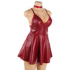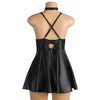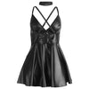 Rohkea keinonahkainen mekko, jossa yhdistyvät säädettävät olkaimet ja vartaloa myötäilevä leikkaus. Täydellinen valinta, kun haluat korostaa asennetta ja viettelevää tyyliä. Mukana säädettävä kaulapanta.