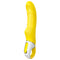Satisfyer Yummy Sunshine pitää sisällään paljon: juomuinen muotoilu, voimakas värinätoiminto ja liukas täyssilikonivarsi yhdessä leikkisässä paketissa. Tämä vibraattori osuu kaarevan muotonsa ansiosta suoraan G-pisteeseesi, ja sen juomut hyväilevät emätintä. Voit valita 12 värinäohjelmasta, jotka koostuvat 6 eri voimakkuudesta ja 6 eri värinäkuviosta.
