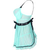 Jos tämä asu ei laita sukkiä pyörimään jaloissa, niin ei sitten mikään! Tämä pirteän värinen, kaunis asu on tehty pitsistä ja läpinäkyvästä, pisteisestä kankaasta. Takaosan kruunaa satiininauha, joka solmitaan rusetille.
